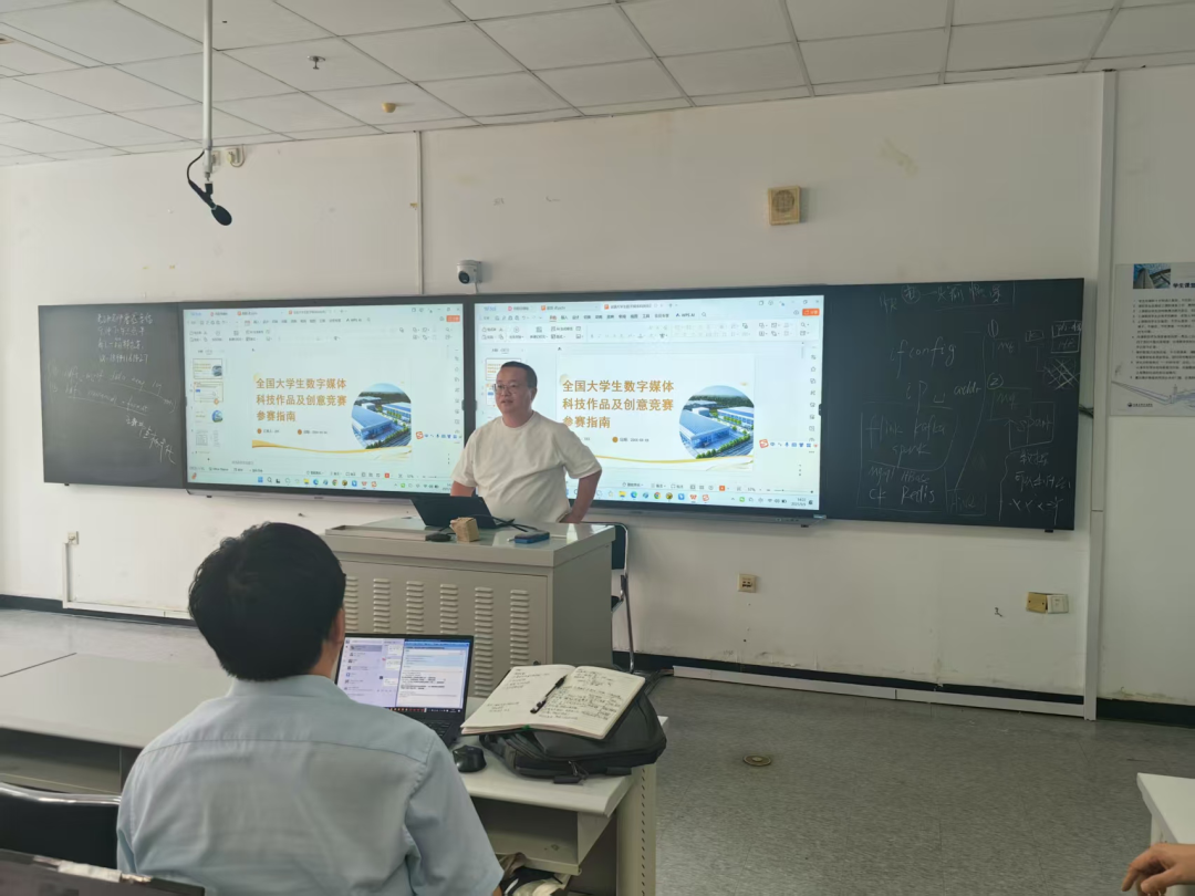 王俊领老师对赛事进行了解读并进行经验分享。数字媒体竞赛的宗旨是搭建校企、政产学研产教融合平台,助力大学生数字创意、设计实践、技术迭代和产品创新能力提升。赛程分为校赛、省赛和总决赛,分为指定命题和自主命题,其中指定赛道以红色之旅、AIGC、讲好中国故事等专项赛道,自主命题主要以虚拟现实、数字艺术展示、小程序等赛道为主,本年度大赛作品提交截止9月21日。