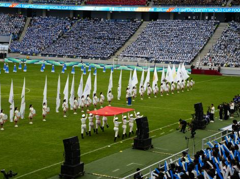 9月17日,大连2025年国际大体联足球世界杯在中升梭鱼湾足球场盛大启幕,这一国际级体育盛事不仅点燃了城市的运动激情,更成为软件学院2025级新生开启校园新生活、感受国际赛事魅力的特别一课。为使新生们在入学之初便沉浸式体验高水平体育竞技的热血与活力,软件学院积极组织200余名新生有序前往观赛,从前期报名统筹、现场带队引导到往返交通保障,每一个环节都尽显对新生的细致关怀。