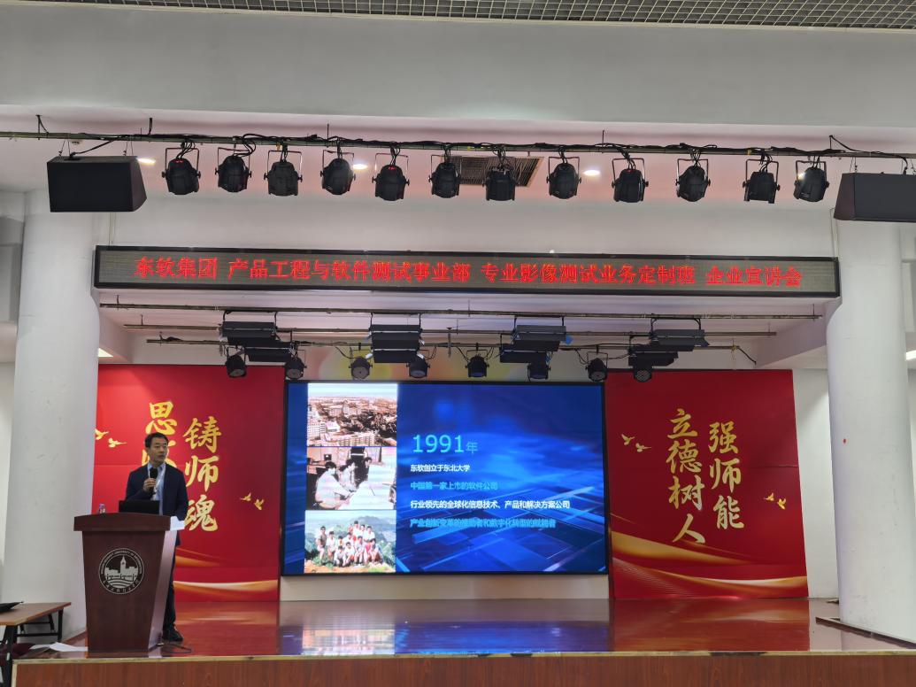 为深入贯彻立德树人根本任务,落实国家产教融合发展战略,创新应用型人才培养模式,我校软件学院与东软集团产品工程与软件测试事业部联合开设了专业影像测试业务定制班。10月11日,定制班宣讲会在A1-306报告厅举行。