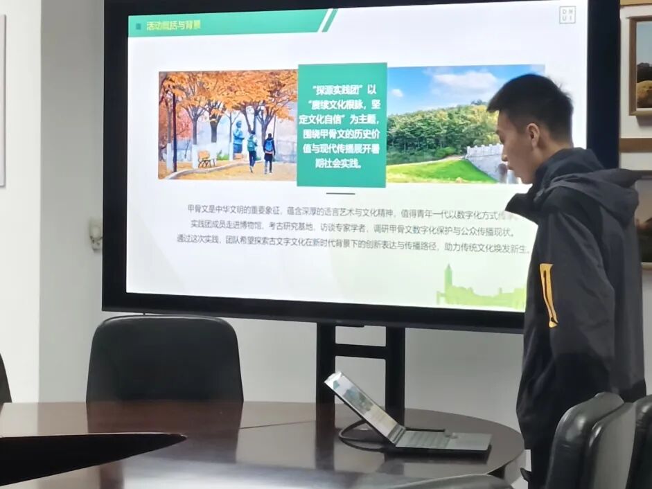 在成果展示环节中,各队伍更是亮点纷呈。有的凭借对非遗文化的深入挖掘与生动讲述,让古老技艺的魅力跃然眼前;有的通过红色故事的深情回溯,传递出信仰的力量;有的以生态保护的切实行动与显著成效,诠释着绿色发展理念;有的用关爱老人的暖心故事,彰显着青春的人文关怀;有的结合时代发展需求,展现出青年对未来的思考与担当;有的从甲骨文文化探源出发,为传统文化的现代传播打开新的思路。