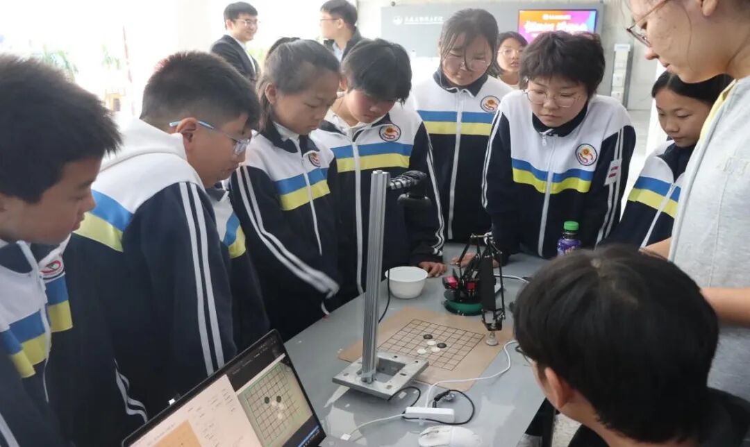 活动伊始,在志愿者的引导下,山屏小学师生首先来到软件学院,一场别开生面的“人机对弈”在这里上演。小朋友与搭载先进算法的AI展开五子棋对抗,面对计算机的缜密逻辑与快速反应,小棋手们全神贯注、认真思索,在轻松愉快的博弈氛围中,亲身感受人工智能在智能决策、深度学习领域的独特优势,直观理解科技背后的原理。