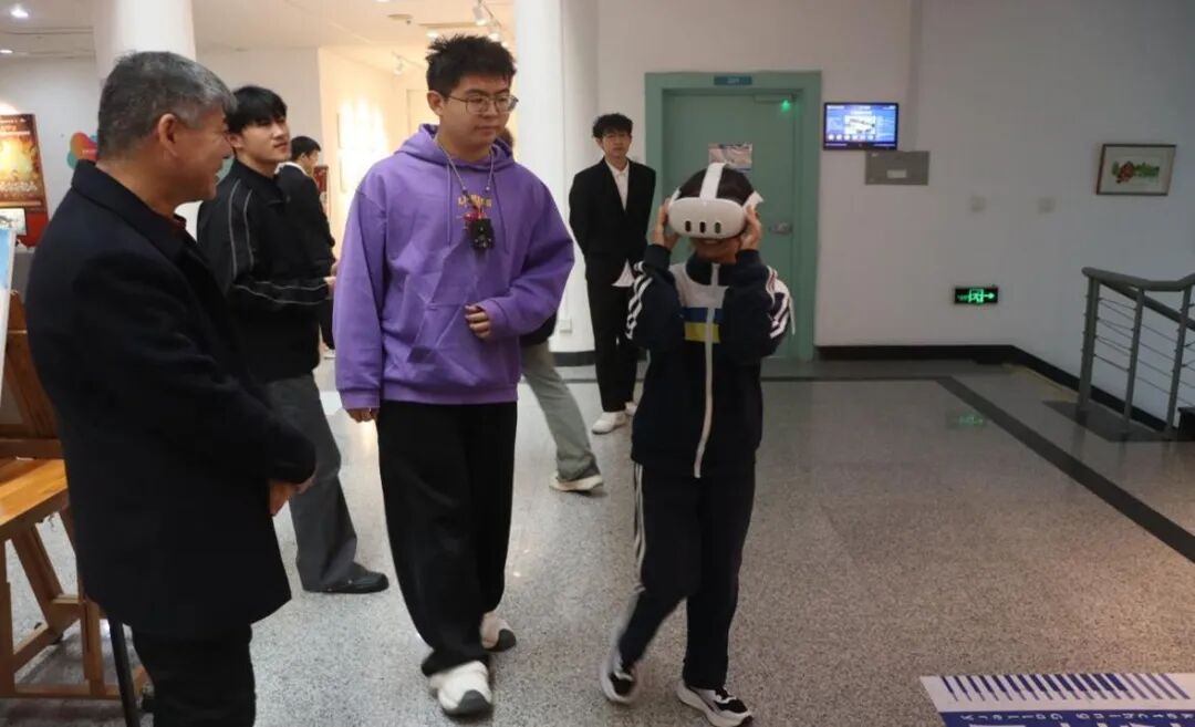 活动最后,山屏小学师生在专任教师的带领下来到了数字艺术与设计学院。在这里,数字艺术学院副院长李济宁老师以通俗易懂的语言为小朋友们讲解虚拟现实(VR)技术的基本原理与发展现状,轻松揭开前沿科技的“神秘面纱”。在VR体验环节,孩子们戴上设备瞬间“穿越”至浩瀚宇宙或深邃海底,沉浸式的感官体验引得阵阵惊呼。