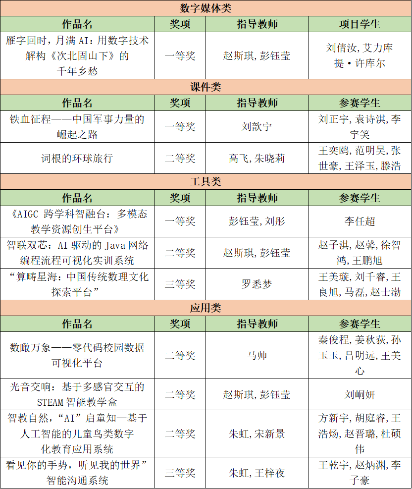 相较于去年,我院成绩再创新高。在本次赛事中,我院学子一举斩获三个赛道的省级一等奖,其中李任超同学的作品不仅夺得小组第一,更作为优秀案例在全场进行展示分享。这一系列成果,充分彰显了我院在数字化教育应用创新领域的深厚积淀与持续引领能力。