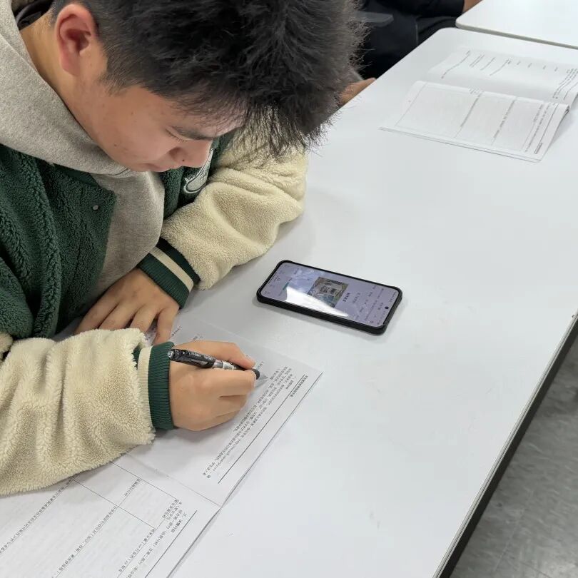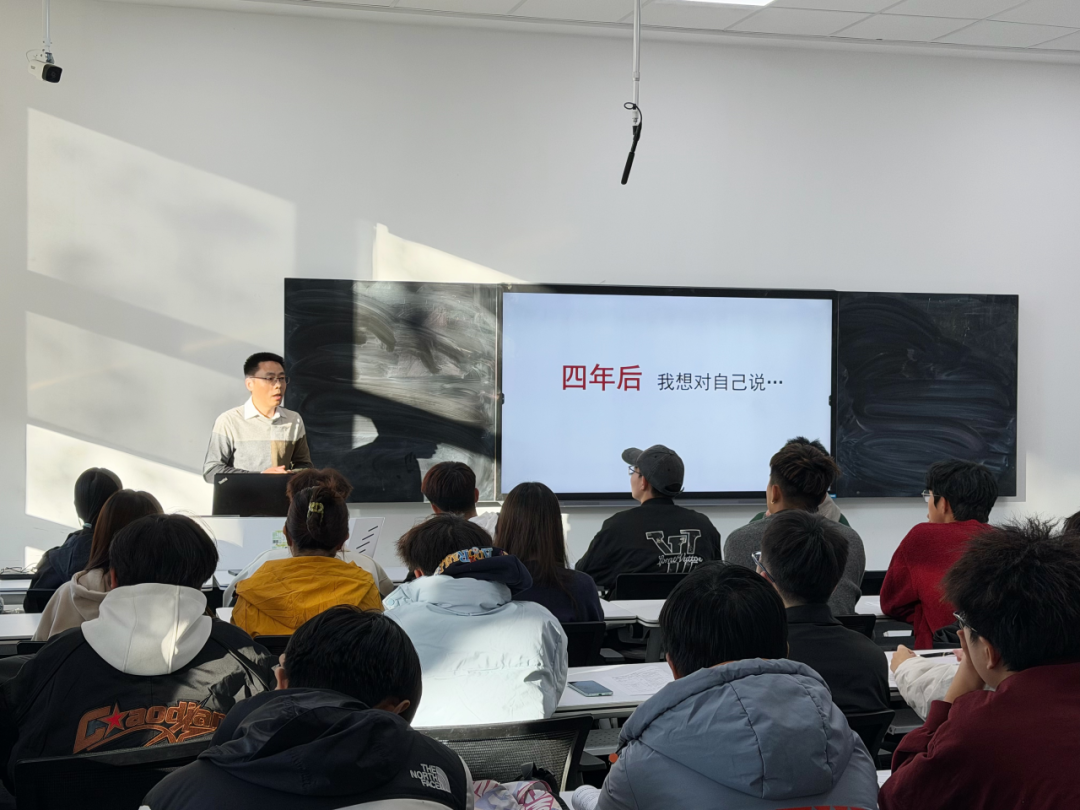 随后,院长邀请同学们闭眼两分钟,畅想四年后的职业场景、核心技能与人生状态。睁眼后,现场气氛活跃,同学们愿景各异:有人计划读研深耕学术,有人立志当资深算法工程师,有人愿投身国产软件研发。院长认真倾听后,引导大家思考“如何将愿景转化为当下行动”,让职涯规划从“空想”变“可执行路径”。