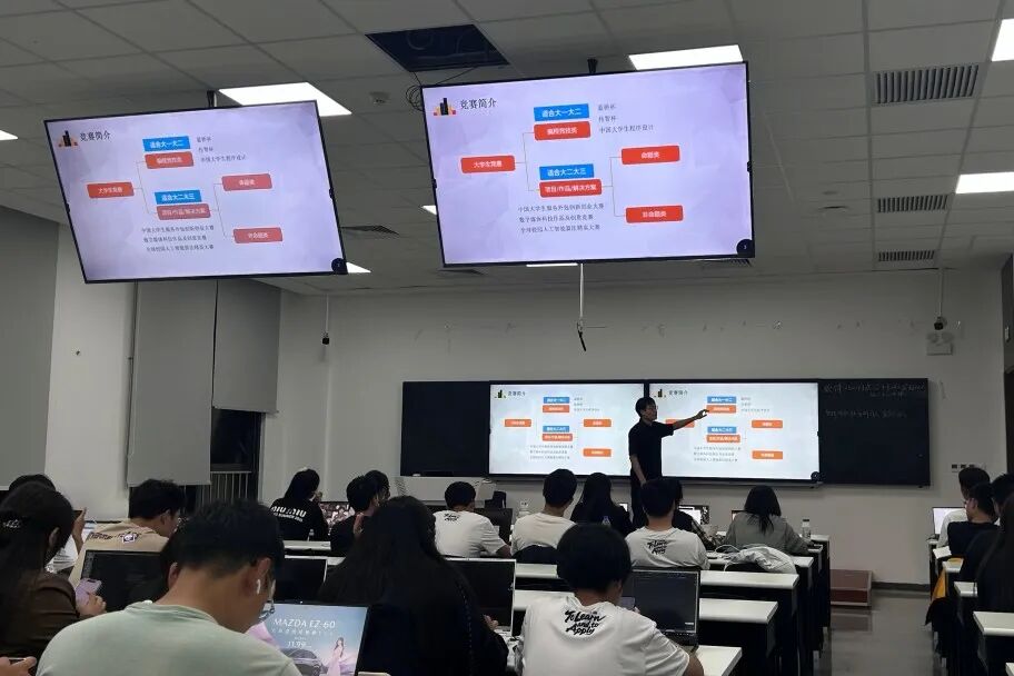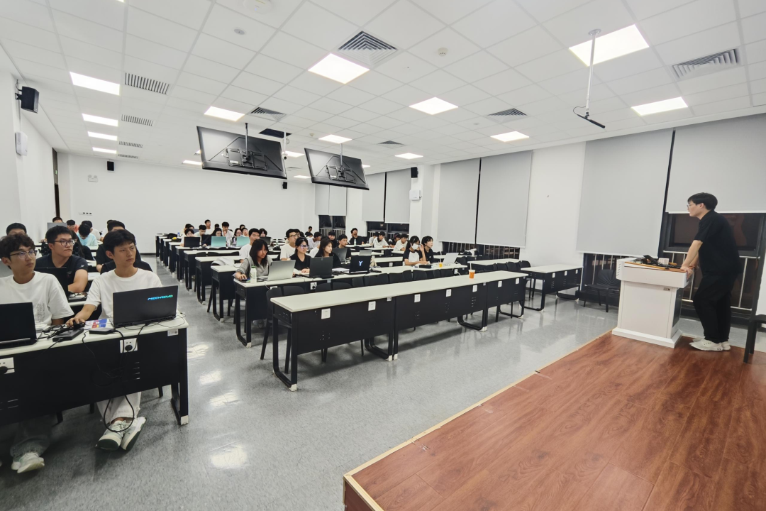 社长徐智鸿与指导老师刘真、沈牧溪深入软数系大一晚自习室开展招新宣讲,全面介绍社团优势与激励政策,现场设抽奖环节调动热情,共吸引150余名同学咨询报名