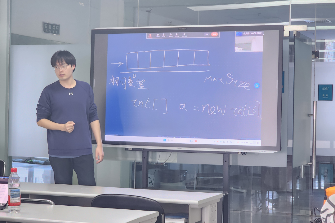 通过“白板推演+实时编码”的方式,刘老师细致讲解代码规范与边界处理技巧,理论结合实践的模式显著提升学习实效,激发了成员备赛热情。