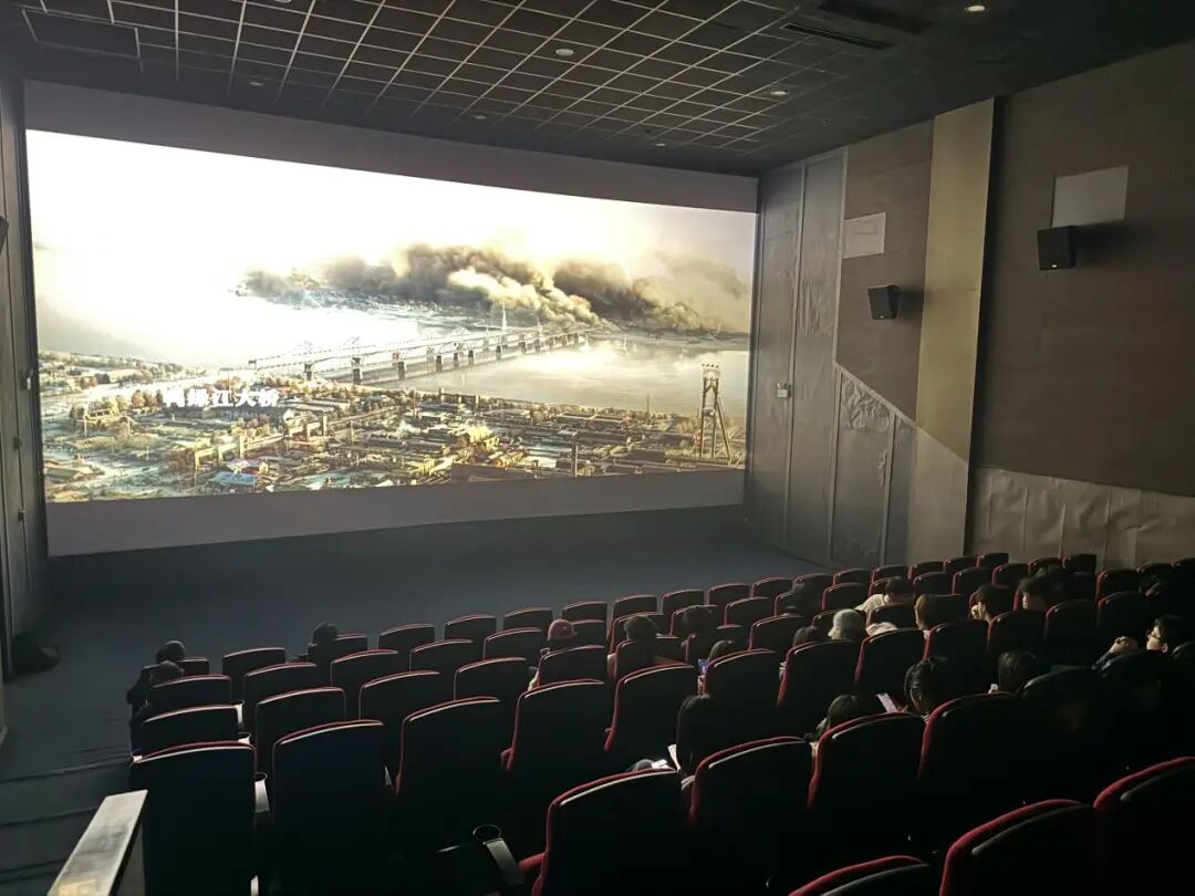观影过程中,师生党员佩戴党徽,有序落座。随着银幕亮起,鸭绿江断桥的残垣、战士们啃冻土豆的粗糙双手,瞬间将所有人拉回1950年的寒冬。影片以宏观视角与微观叙事交织,展现了松骨峰阻击战中“人在阵地在”的血肉拼搏,战场上战士们冒着枪林弹雨冲锋陷阵的画面让人深受感动。两个小时的观影,全场静默专注,唯有银幕的光影与观众席间凝重的目光交织,共同致敬那场“用命拼来的和平”。