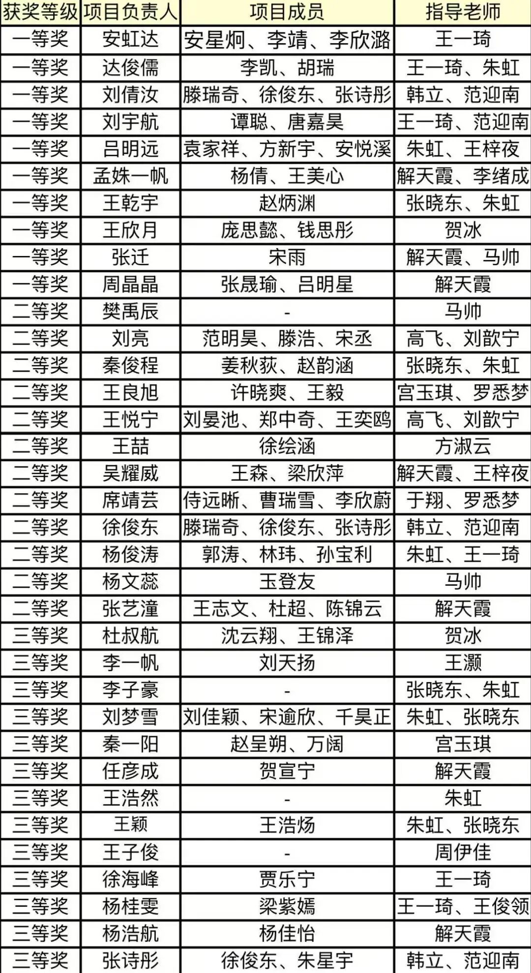 获奖名单