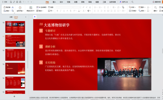 本次答辩的各个社会实践团队围绕红色足迹、非遗传承、志愿微光等六大主题开展实践汇报,主题多元且贴合时代需求。各团队或深挖红色故事、助力红色文化数字化传播;或探访非遗阵地、为非遗保护创新建言;或投身志愿服务、用爱心传递温暖;或深入基层调研、探寻历史文脉;或走进社区开展公益宣传、锤炼综合能力。每支队伍都立足特色、各展所长,实践成果丰硕且亮点纷呈。