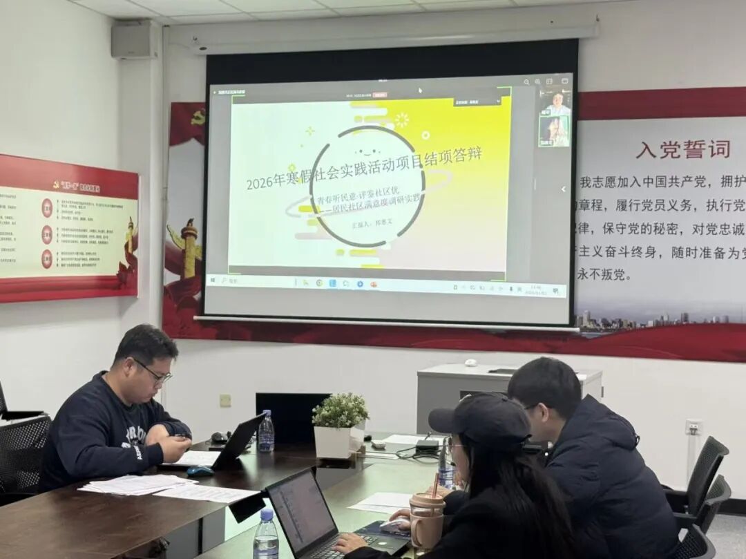 为检验2026年寒假社会实践成果,搭建交流分享平台,引导学子在实践总结中深化成长,软件学院于3月3日在A3-319以线上线下同步进行的形式举办了2026年寒假社会实践结项答辩大会。软件学院团委书记蒋军,素质教师宋晗、李昊担任评委出席答辩现场。17支实践团队依次汇报,全面展现了在这个寒假里学子们扎根社会、践行使命的青春风采。