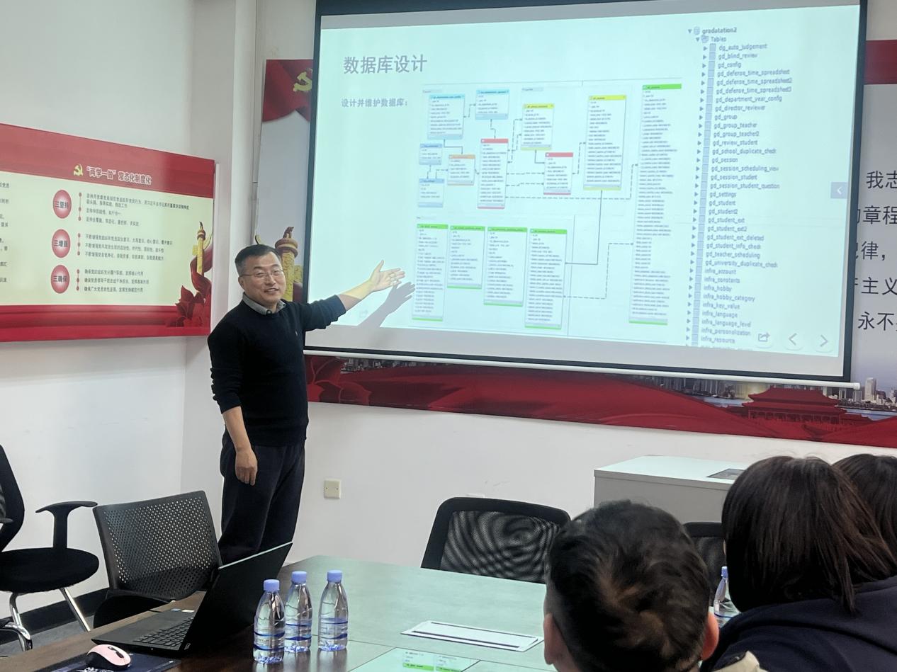崔恒吉老师聚焦“教师团队合作模式”,分享了毕设流程管理系统的孵化历程。项目源于对毕设管理痛点的深度洞察,团队采用产品经理、业务负责人、数据库与API设计、前端开发四角色协同架构,通过需求调研、原型设计、业务解释、数据库构建、API开发到前端实现的全流程协作,成功构建教学管理信息化系统。