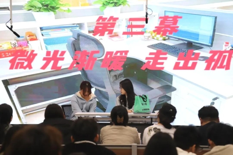 本次比赛汇聚了学院四支优秀剧组,他们围绕当代大学生常见的心理议题——如网络依赖、成长迷茫、自我独立与心灵治愈等,精心编排、倾情演绎。舞台上,演员们用真挚的情感和生动的表演,将青春的困惑与挣扎、成长的力量与希望娓娓道来,深深打动了在场的每一位观众,现场掌声不断,气氛温馨而热烈。